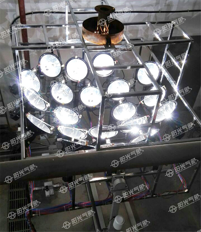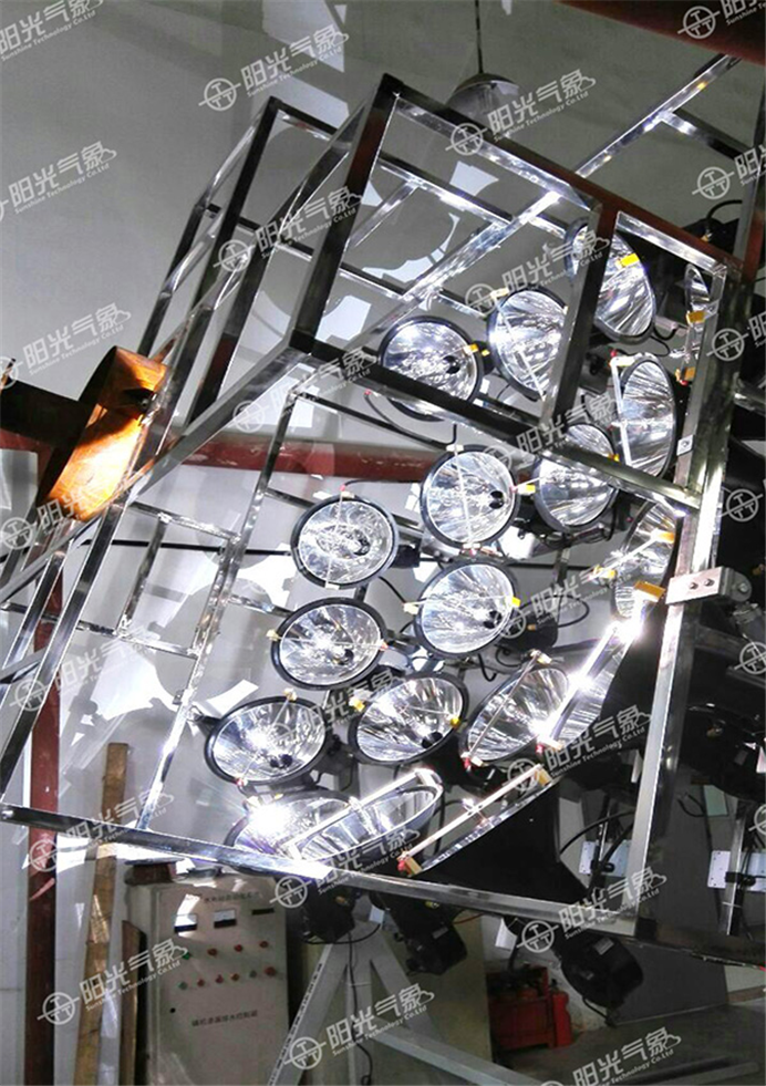 該模擬器是國內(nèi)首創(chuàng)的大型多點(diǎn)聚光式太陽模擬器,采用環(huán)形聚光模式模擬真實(shí)太陽的發(fā)光特性,可以實(shí)現(xiàn)對太陽照射模擬的高溫試驗(yàn),聚光溫度可達(dá)到1000℃以上。該模擬器具有高輻照度、大尺寸光斑、均勻性和穩(wěn)定性良好、長時(shí)間持續(xù)工作等優(yōu)勢,各項(xiàng)技術(shù)指標(biāo)均處于國內(nèi)領(lǐng)先水平。聚光式太陽模擬器的投入使用,有效提高了南京工業(yè)大學(xué)教學(xué)試驗(yàn)?zāi)芰?,對我國模擬測量工作具有重要意義。