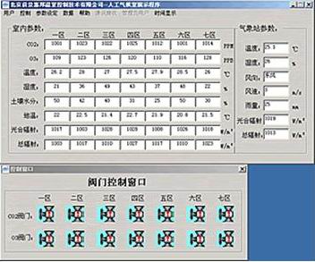 采集氣候室內(nèi)溫度、濕度、光照、輻射、CO2、O3、土壤水分、土壤溫度等參數(shù),實(shí)現(xiàn)對(duì)氣候侯室內(nèi)加溫降溫系統(tǒng)、加濕除濕系統(tǒng)、補(bǔ)光系統(tǒng)、CO2施肥系統(tǒng)、O3除菌消毒系統(tǒng)、灌溉系統(tǒng)等系統(tǒng)的自動(dòng)控制。