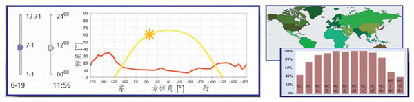 (6)可以針對不同的建筑、不同時間段進(jìn)行模擬計算軟件中采用動態(tài)建筑模擬,考慮到建筑所有相關(guān)的參數(shù),包括幾何結(jié)構(gòu)、方位和熱質(zhì),提供詳細(xì)的隔熱數(shù)據(jù);同時軟件在計算中,由定位坐標(biāo)和地平線共同確定太陽的位置,每四分鐘更新一次,因此甚至可以專門針對某小時、某天或者某段時期內(nèi)的太陽能系統(tǒng)進(jìn)行模擬計算。