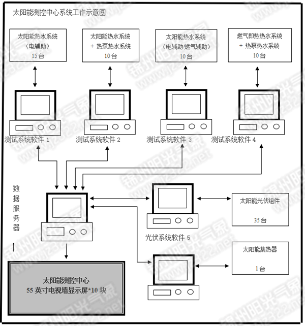 太陽能實(shí)驗(yàn)室測(cè)控中心集成了現(xiàn)代化的網(wǎng)絡(luò)技術(shù),集顯示、監(jiān)控、操作、測(cè)試于一體的綜合型應(yīng)用平臺(tái)。該平臺(tái)可為太陽能光熱、光伏等檢測(cè)設(shè)備提供遠(yuǎn)程終端服務(wù)及操作,使用方便,技術(shù)先進(jìn),信息集成化程度高。測(cè)控中心采用C/S拓補(bǔ)結(jié)構(gòu)設(shè)計(jì)布置,并提供B/S模式服務(wù),以及測(cè)試現(xiàn)場(chǎng)錄像監(jiān)控,室內(nèi)采用40-55寸顯示幕墻,用以顯示測(cè)試現(xiàn)場(chǎng)的數(shù)據(jù)及相關(guān)圖像,并可同時(shí)設(shè)置多臺(tái)7寸以上顯示屏數(shù)據(jù)處理終端,可供實(shí)驗(yàn)室遠(yuǎn)程監(jiān)督管理使用。