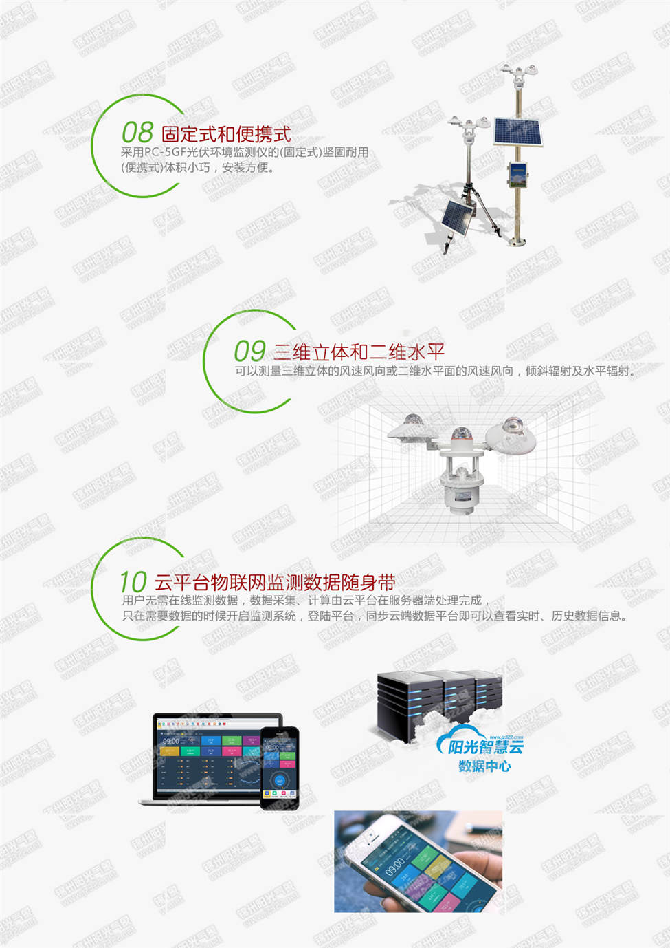 PC-5GF分布式光伏環(huán)境監(jiān)測儀適用于太陽能光伏發(fā)電、太陽能資源評估、氣象生態(tài)環(huán)境監(jiān)測、環(huán)保與農(nóng)林業(yè)、建筑、科研教育等領(lǐng)域。