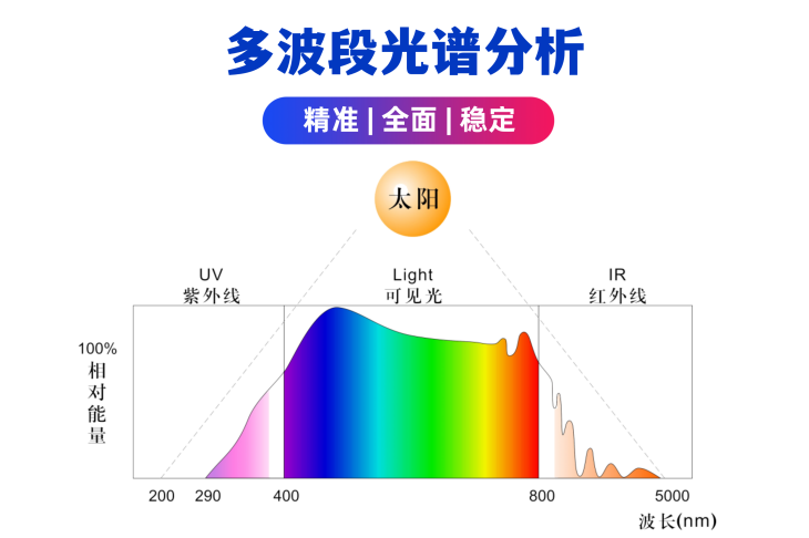 太陽總輻射、紫外光、綠光、紅橙光、紅外光、紫藍(lán)光、可見光、近紅外、遠(yuǎn)紅外