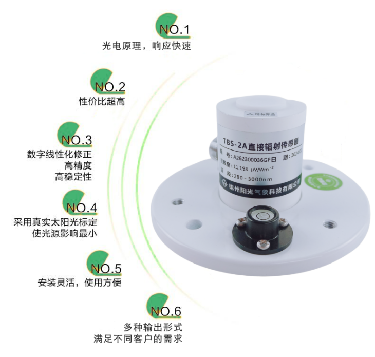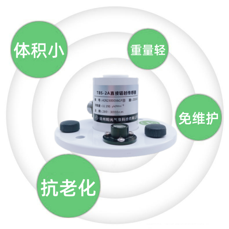 TBS-2A直輻射傳感器專門用于監(jiān)測(cè)和記錄太陽直接輻射的強(qiáng)度。其核心部件是高精度感光元件,這些元件對(duì)光線具有極高的敏感性,能夠捕捉太陽輻射中未經(jīng)大氣散射、反射或吸收的那部分能量,精確地將光信號(hào)轉(zhuǎn)換為電信號(hào),通過測(cè)量這一電信號(hào)的大小,可以準(zhǔn)確反映太陽光的直接輻射強(qiáng)度。儀器本身沒有移動(dòng)部件、不需供電、免于維護(hù),能夠勝任野外的長(zhǎng)期監(jiān)測(cè)使用。